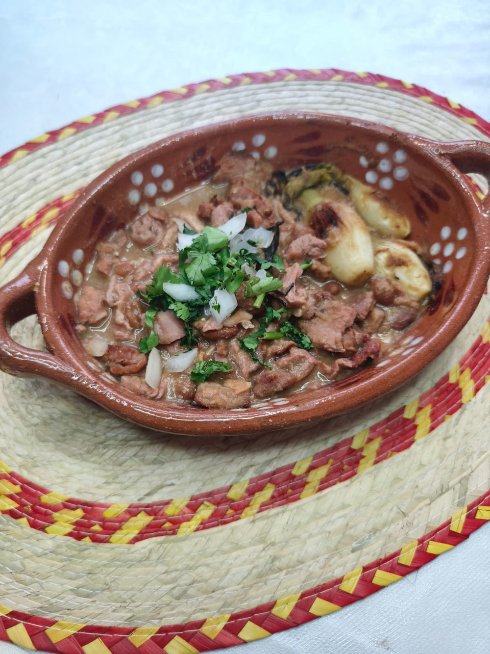 Sirve bien caliente, añade los frijoles de la olla (sin el caldo) y el tocino frito.