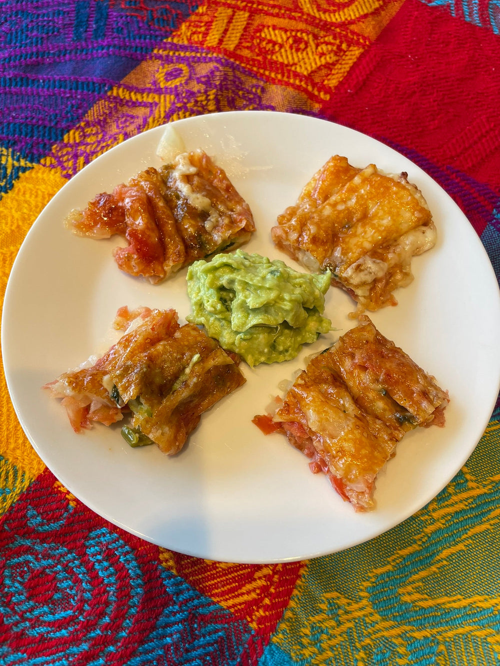 Cuando el queso comience a calentarse vamos a introducir los 3 ingredientes tal como forman la Bandera Mexicana